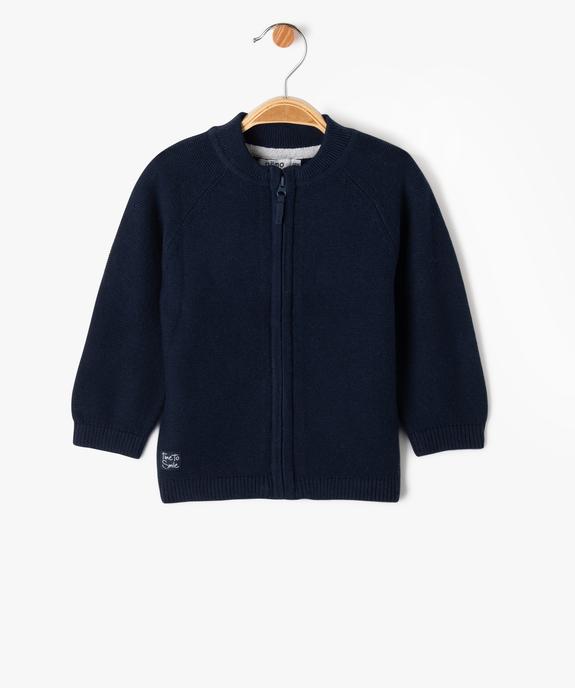 Les bambins ne quitteront plus ce gilet zippé en fine maille de coton ! Un gilet bébé mixte à l'esprit veste Teddy qui mixe à la perfection casual et élégance. Il se marie donc avec l'ensemble du vestiaire de votre tout-petit : jogger, pantalon souple, jean, short... On apprécie la souplesse du coton, le confort de ses manches raglan et sa fermeture zippée. Finition bord-côte au col, aux poignets et dans le bas. Patch brodé dans le bas.