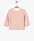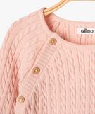 Ce gilet brassière pour bébé confortable et pratique, est conçu pour envelopper les tout-petits dans un cocon de douceur. Tricoté dans une jolie maille torsadée, il se caractérise par sa fermeture sur le côté à l’aide d’une rangée de petits boutons aspect bois, qui facilite l'habillage sans avoir à passer le vêtement par la tête. Ce gilet bébé offre chaleur et douceur, idéal pour garder bébé bien au chaud lors de ses premiers mois. Polyvalent, il se porte aussi bien avec une jupe, un pantalon que sur un pyjama. Revers cousus en bas des manches. Col rond fantaisie.