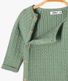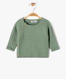 Ce gilet brassière pour bébé allie confort et praticité, parfait pour réchauffer les tenues des bouts de chou en douceur. Tricoté dans une élégante maille torsadée, il se distingue par sa fermeture latérale à petits boutons effet bois, permettant un habillage facile sans avoir à passer le vêtement par la tête. Idéal pour les premiers mois, ce gilet bébé s’accorde aussi bien avec une jupe qu’avec une robe ou un pantalon pour des tenues toujours charmantes et adaptées à toutes les occasions. Revers cousus en bas des manches. Col rond fantaisie.