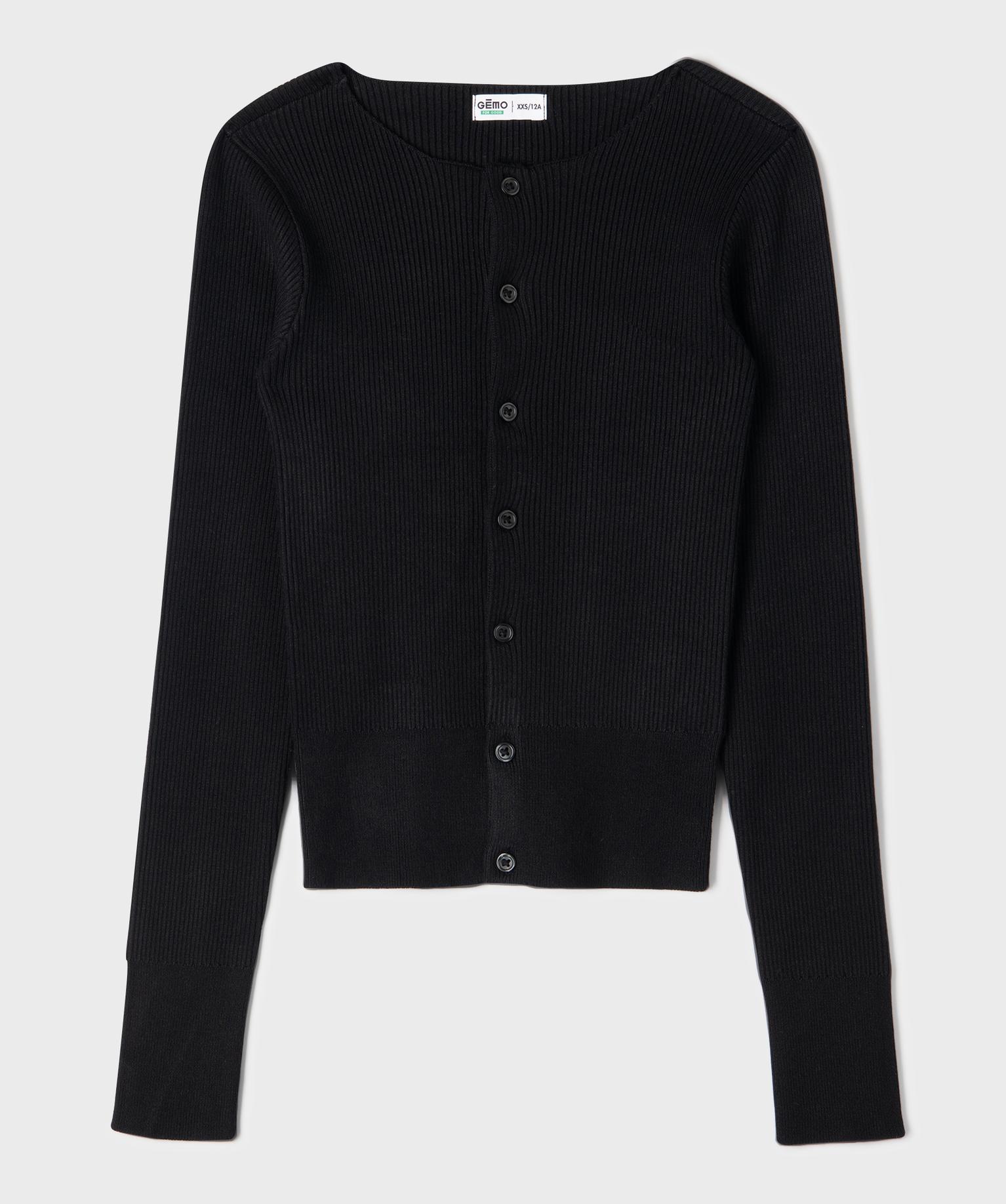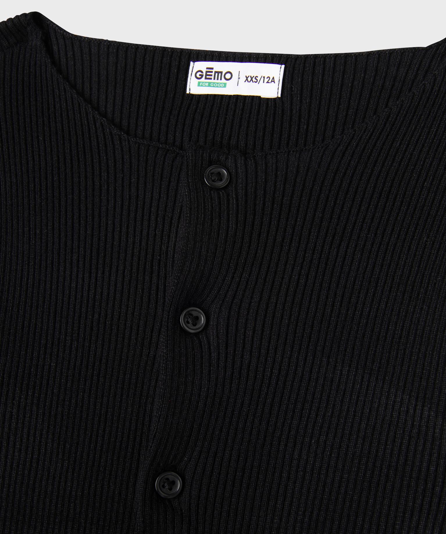 Gilet col rond en maille côtelée fille noir