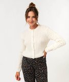 Gilet court en maille ajourée femme ecru