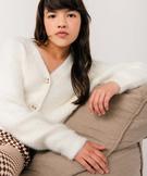 Gilet court en maille duveteuse fille blanc chine