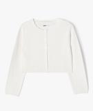 Ce gilet en coton accessoirisera la plupart des tenues estivales en leur ajoutant une touche classique et romantique. Confectionné en coton fin, il affiche une élégante maille fantaisie et des finitions dentelées au niveau du col. Ce joli cardigan fille arbore une coupe courte et une fermeture par trois boutons sur la partie haute. Idéal pour réchauffer une robe de cérémonie, ce gilet court accompagne aussi des tenues plus décontractées. Col rond.