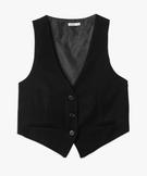 Emprunté au vestiaire des hommes, ce gilet de costume saura imposer son style dans la garde-robe féminine. Un gilet sans manches au coloris intemporel, fermé par trois boutons. Sa coupe ajustée est sublimée par des pinces sur l’avant et de fausses poches passepoilées. Le bas en pointe, légèrement plus long sur l'avant, apporte une touche originale et harmonieuse à ce gilet femme. Une pièce sobre, élégante, qu’il vous suffira d’associer avec un pantalon de smoking ou votre jean préféré, seul pour un look sexy ultra tendance ou sous un blazer pour une allure plus classique.
