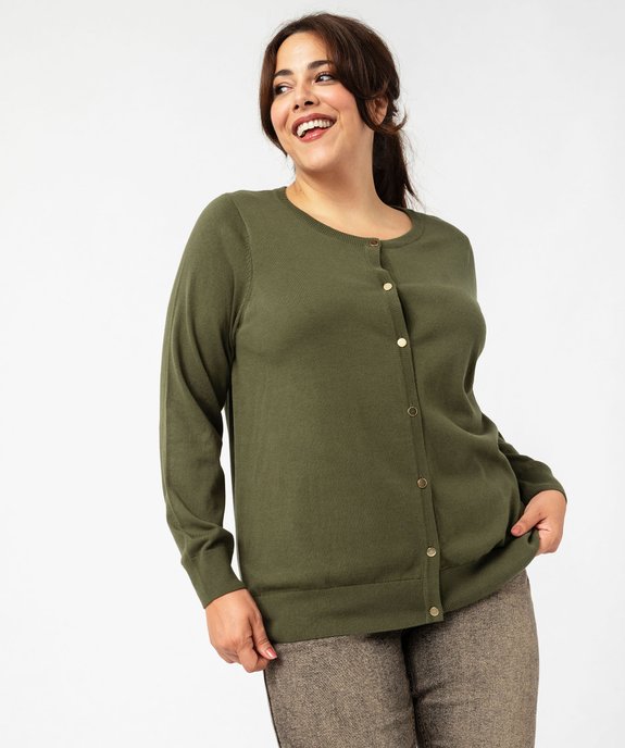 Gilet en fine maille à boutons dorés femme grande taille kaki