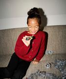 Gilet en grosse maille à col rond fille rouge