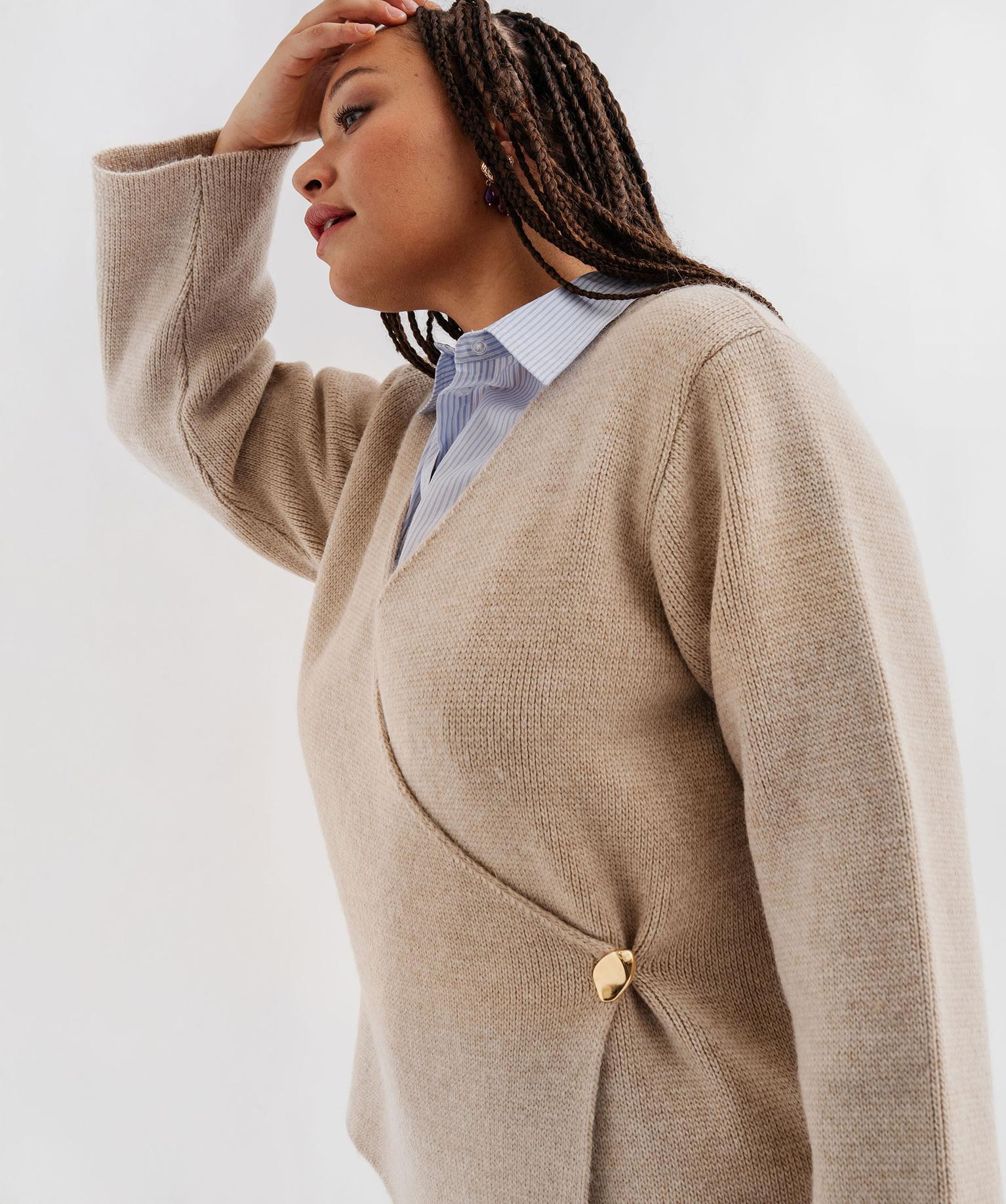 Gilet en grosse maille fermeture croisée femme grande taille beige clair