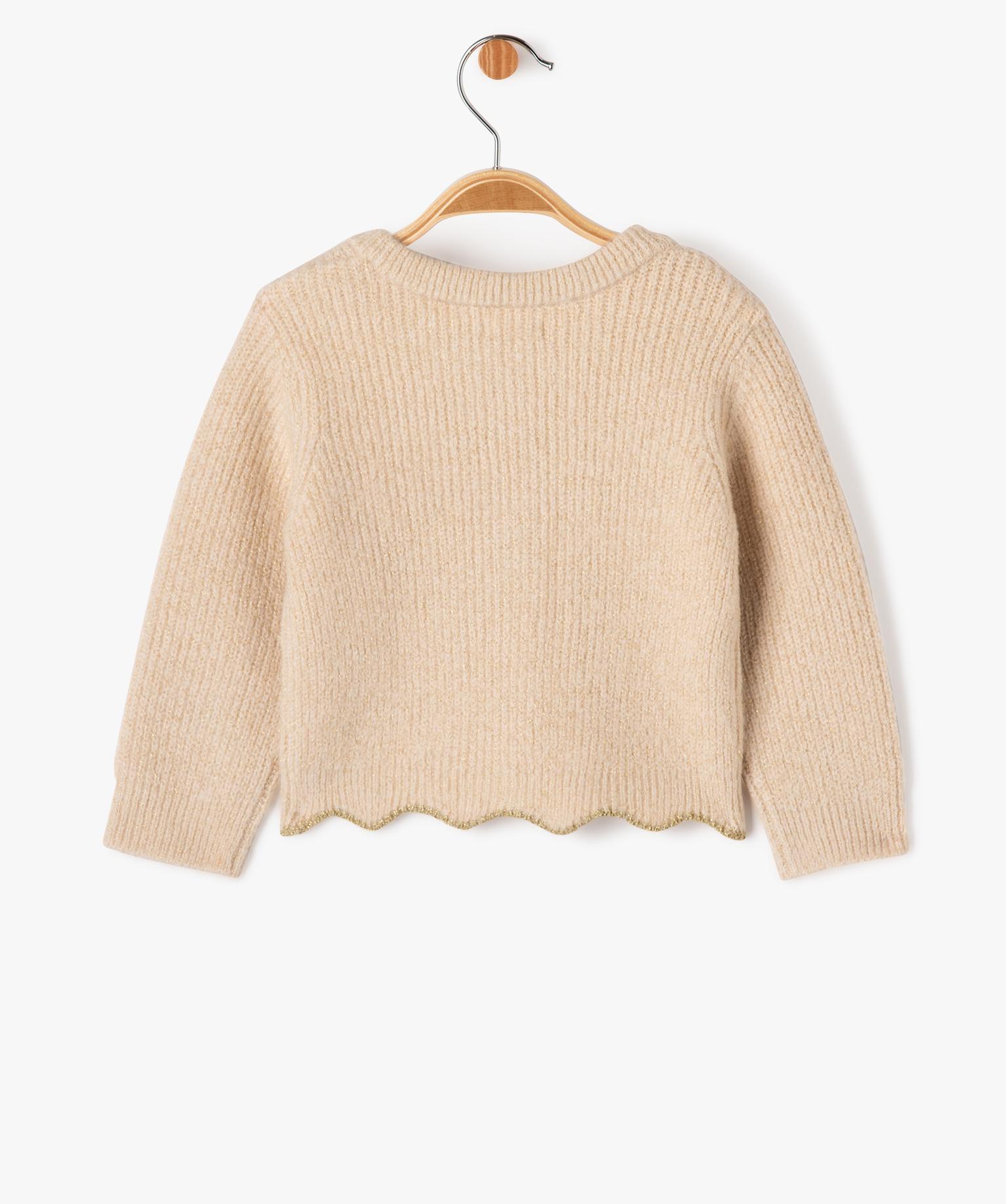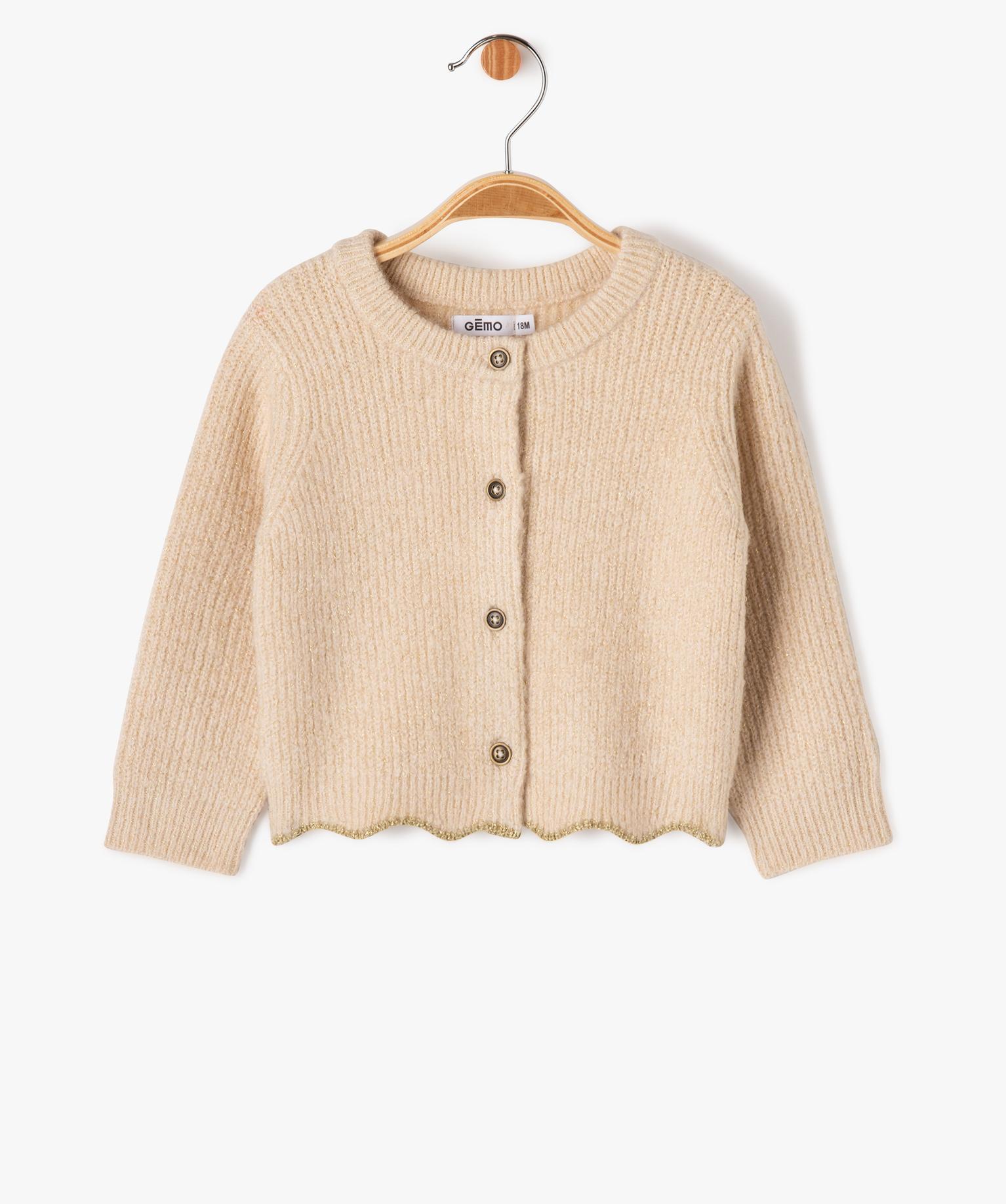 Gilet en grosse maille pailletée et finition fantaisie bébé fille beige