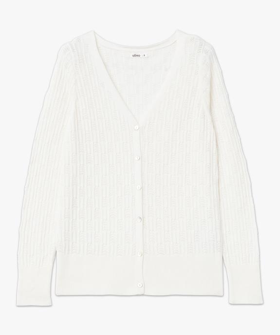 Gilet en maille ajourée et boutons nacrés femme blanc chine