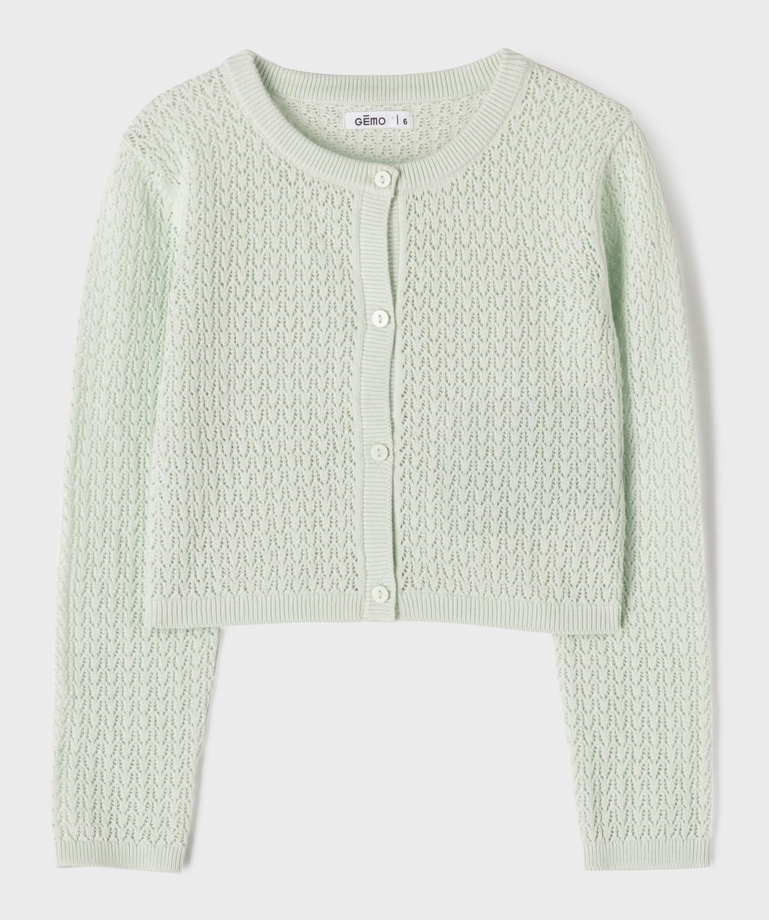 Gilet en maille ajourée fantaisie fille vert clair