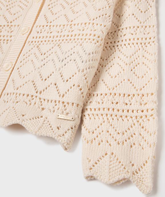 Gilet en maille ajourée fille - LuluCastagnette blanc chine