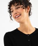 Redécouvrez le classique cardigan avec une jolie boutonnière, subtilement originale ! De quoi twister vos tenues quotidiennes tout en restant très chic. Vous apprécierez la confection ultra douce et fine du gilet femme. Il est tricoté dans une maille viscose à tomber. Un essentiel à combiner aussi bien à un pantalon qu'à une jupe ou un jean. Large finition bord-côte fantaisie aux poignets et dans le bas.