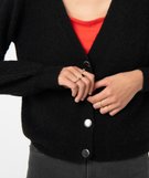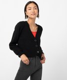 Quoi de mieux que de réchauffer ses tenues avec un gilet élégant ? Choisir un gilet en matières recyclées ! Ce gilet pour femme contient du polyester recyclé associé à une touche de laine et d’alpaga pour encore plus de chaleur. Il possède des manches en maille fantaisie froncées sur les épaules et resserrées aux poignets. Il possède un col V et se ferme par une rangée de boutons fantaisie. Un gilet tout doux à ajouter dans le dressing !