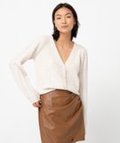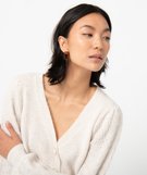 Quoi de mieux que de réchauffer ses tenues avec un gilet élégant ? Choisir un gilet en matières recyclées ! Ce gilet pour femme contient du polyester recyclé associé à une touche de laine et d’alpaga pour encore plus de chaleur. Il possède des manches en maille fantaisie froncées sur les épaules et resserrées aux poignets. Il possède un col V et se ferme par une rangée de boutons fantaisie. Un gilet tout doux à ajouter dans le dressing !