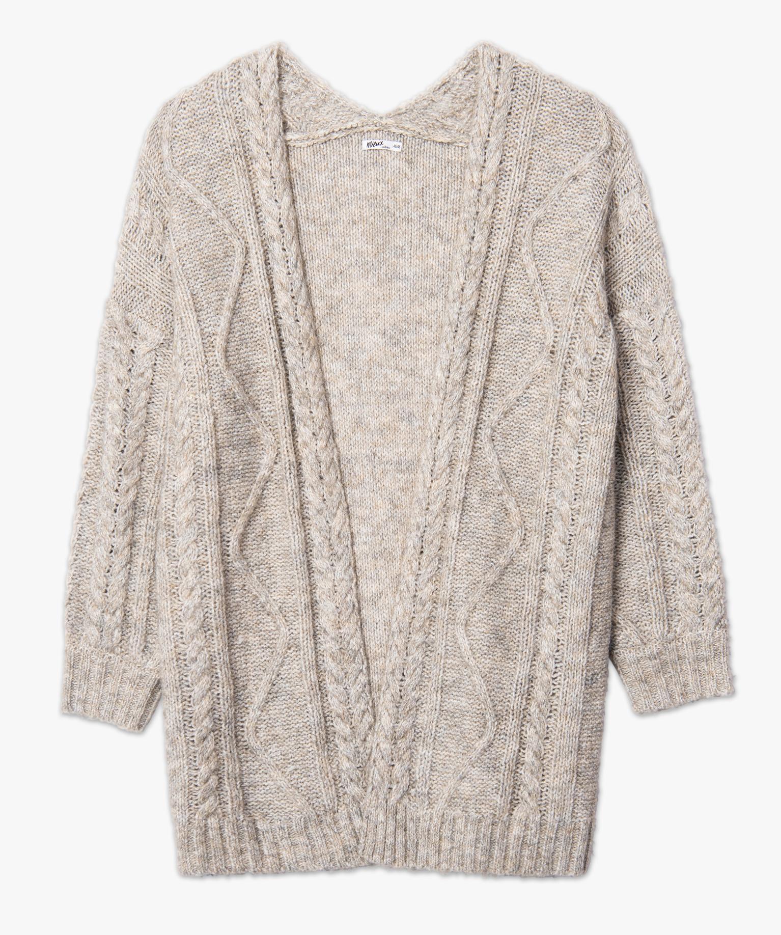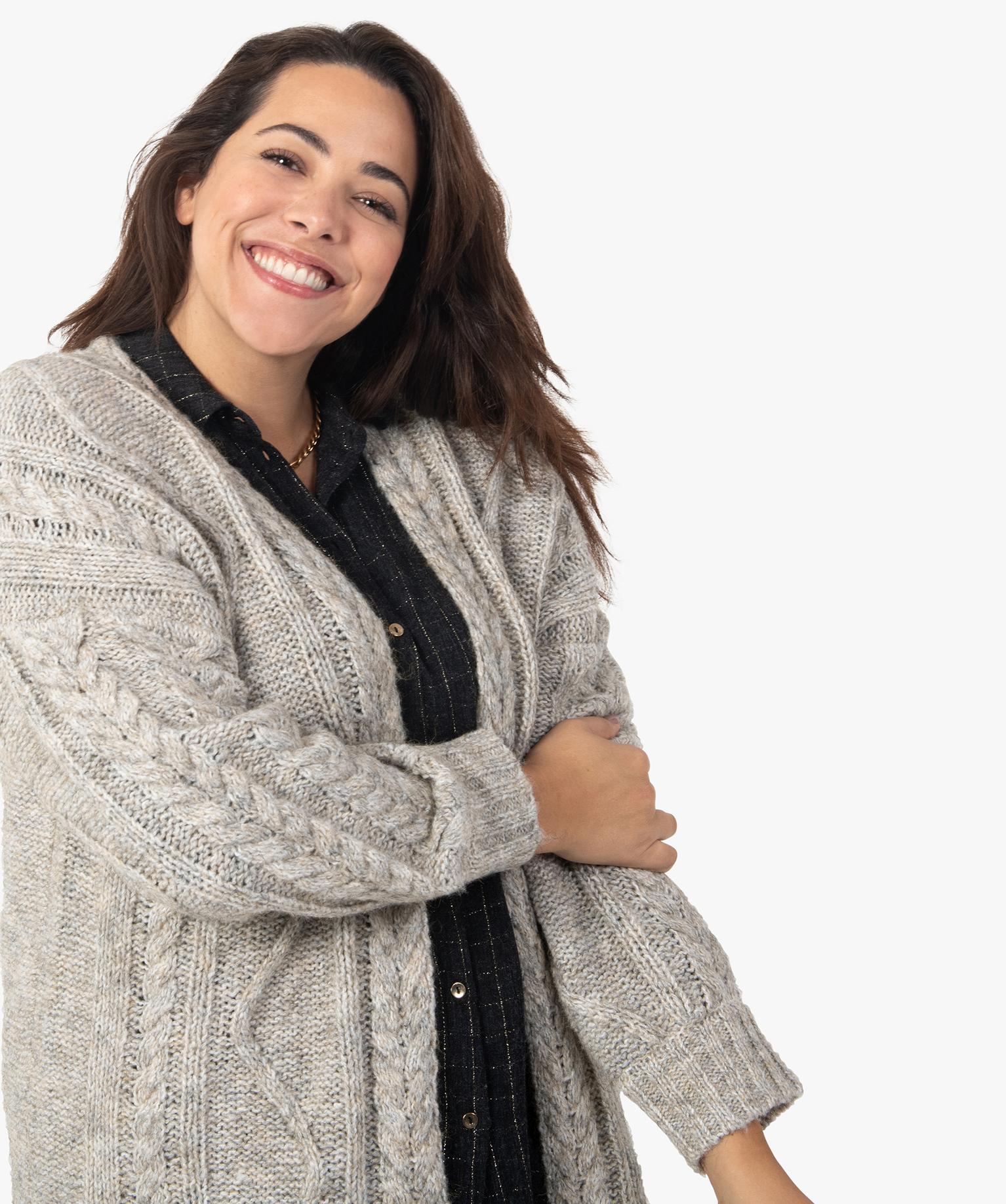 Gilet femme grande taille en grosse maille torsadée beige