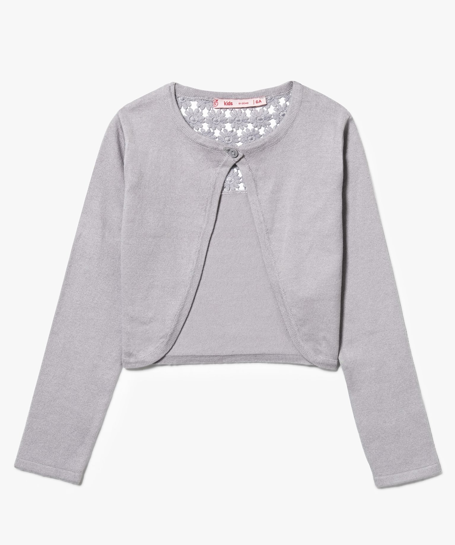 Gilet boléro pour fille. Fermeture bouton. Manches longues.