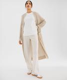 Ce gilet long en maille pailletée ajourée, combine élégance et confort avec une touche de brillance subtile. Porté ouvert, il se distingue par sa coupe fluide qui sublime la silhouette tout en offrant une grande liberté de mouvement. Ce gilet pour femme est doté de deux poches plaquées, ajoutant une touche de décontraction. Ce gilet scintillant est idéal pour rehausser les tenues de l’été, qu’il soit porté sur un top basique et un jean pour un look casual chic, ou sur une robe pour une touche glamour et raffinée. Il peut même se porter comme robe de plage sur un joli maillot de bain.