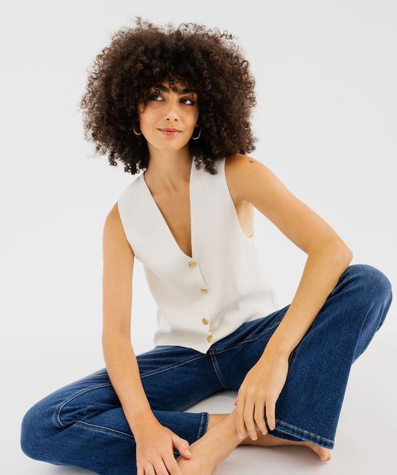 Gilet sans manches à boutons dorés femme blanc chine