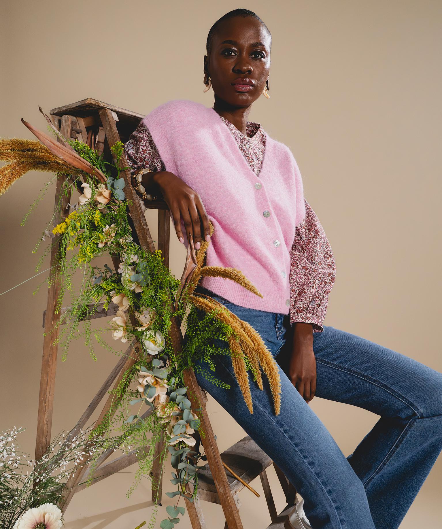 Réchauffez vos looks avec ce petit lainage pile dans la tendance ! Un gilet sans manches à la coupe oversize fermé par une rangée de petits boutons aux reflets nacrés. Ce gilet femme possède un décolleté en V et de larges emmanchures, une coupe facile à superposer sur une chemise, un tee-shirt ou un pull léger. Tricoté dans une matière douillette contenant une pointe de laine, il offre une douce chaleur réconfortante.