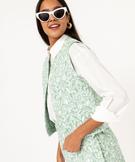 Gilet sans manches matelassé à motifs fleuris femme vert clair