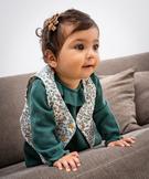 Must-have de la saison, le gilet sans manches réchauffe avec style toutes les tenues. Ce gilet sans manches bébé fille possède un atout de taille, il est réversible pour changer de style en un clin d’oeil ! Doté d’un côté en maille sherpa unie et d’un coté en coton à motifs fleuris, il arbore une allure plein de charme. Ce gilet court se porte aussi bien sur une robe que sur un ensemble pull et pantalon, et se ferme par 3 boutons aspect bois.