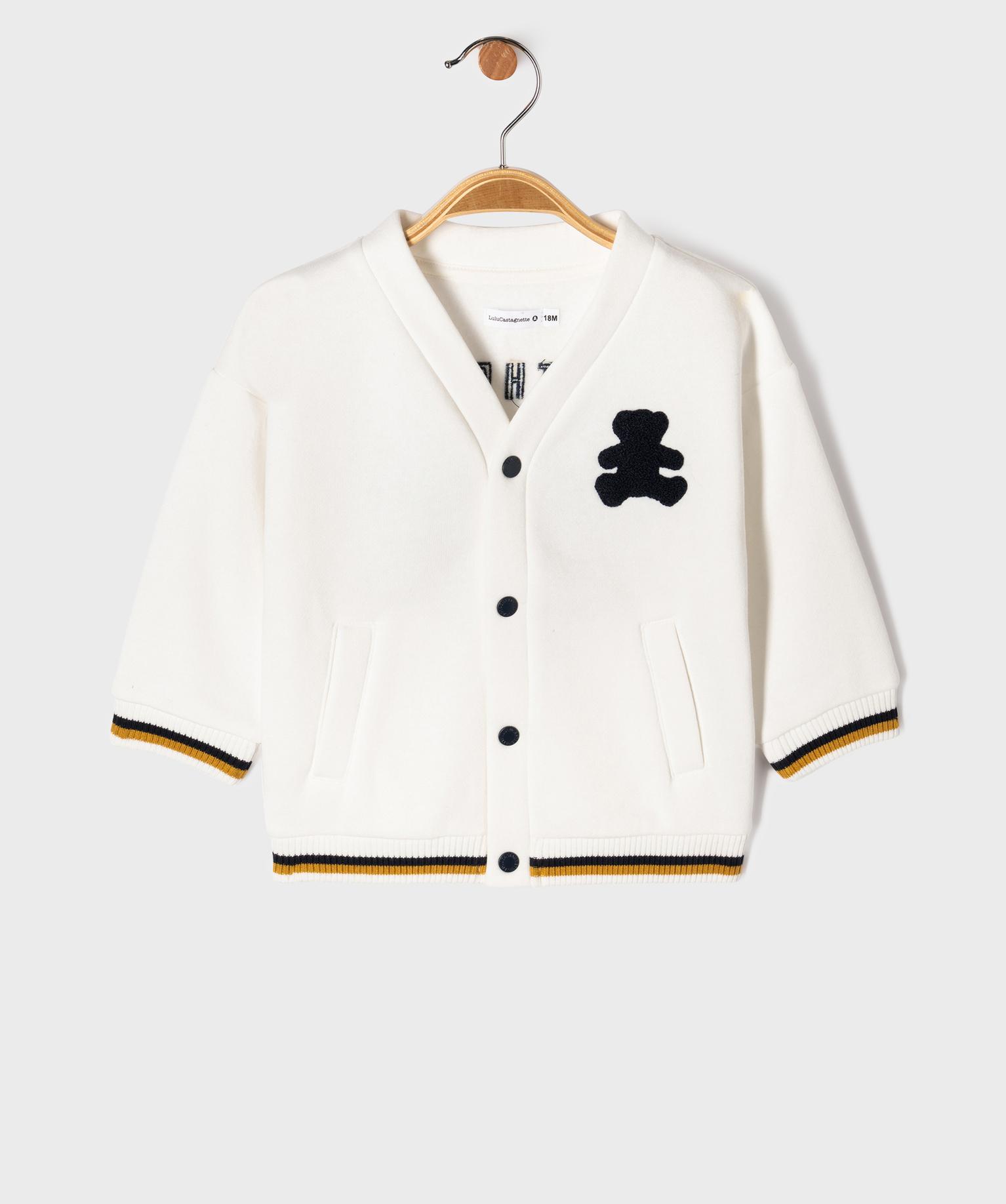 Gilet sweat avec finitions tricolores bébé garçon - LuluCastagnette blanc