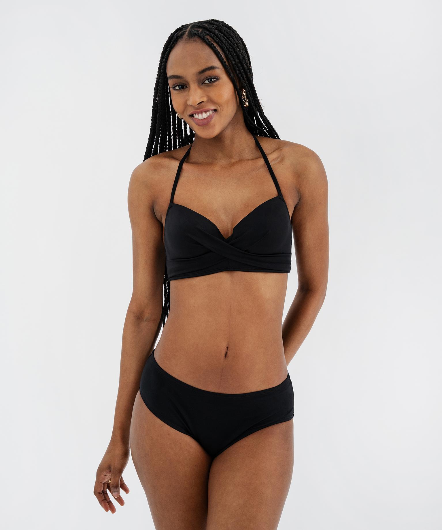 Haut de maillot de bain à armatures et bonnets moussés noir