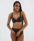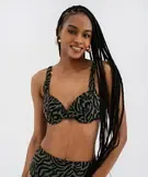 Ce haut de maillot de bain femme sublime votre décolleté avec sa forme corbeille, son petit entre-bonnet et ses élégants bonnets moussés travaillés. Les armatures et les bretelles ajustables assurent le maintien confortable de votre poitrine. Le motif apporte du caractère et de l'originalité à ce maillot de bain. À porter avec le bas de maillot de bain assorti pour un ensemble audacieux et ultra féminin. Mousses non amovibles. Armatures. Fermeture au dos par clip.