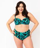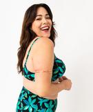 Haut de maillot de bain emboitant à motifs fleuris grande taille noir