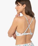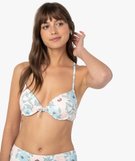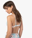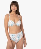 Sublimez votre féminité avec ce joli haut de maillot de bain femme à motifs fleuris décliné dans des teintes pastel. Avec sa forme corbeille et ses bonnets paddés à armatures, il assure un décolleté parfait ! Ce soutien-gorge de bain est agrémenté d’un petit nœud à l’entrebonnet. Il possède de fines bretelles multi-positions pour varier les styles. Ce haut de maillot de bain imprimé est à porter avec la culotte de bain assortie.