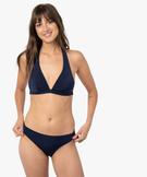 Ce haut de maillot de bain triangle mettra en valeur votre silhouette ! La base est large et plate, pour un excellent maintien. Les bonnets possèdent des coussinets amovibles, pour s'adapter à vos envies. Doté de liens à nouer dans la nuque et dans le dos, ce haut de maillot de bain pour femme s'adapte au millimètre à votre morphologie. La doublure ton sur ton est douce, donc très confortable. Avec sa coupe décontractée et sa couleur unie, ce haut de maillot s'associera aussi bien avec une culotte imprimée qu'avec le shorty de bain coordonné.