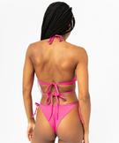 Haut de maillot de bain forme triangle en maille pailletée femme rose clair
