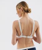 Avec LuluCastagnette l’élégance reste de rigueur en toutes circonstance et même sur la plage ! La preuve avec ce haut de maillot de bain triangle bicolore. Alliance d’une matière subtilement texturée et de bandes en microfibre, ce haut de maillot de bain femme assure une allure sophistiquée tout en restant très agréable à porter. Ses bonnets sans armatures sont dotés de mousses amovibles qui permettent d’augmenter légèrement le volume de la poitrine. Il se distingue par ses larges bretelles multipositions qui peuvent se nouer à des anneaux métalliques sur le tour de buste ou autour du cou. Le tour de buste élastique, rehaussé d’un logo métallique se ferme par une boucle à clipser.