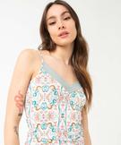Un joli caraco imprimé de petits motifs ou uni selon les modèles, idéal avec un short de nuit ou un pantalon fluide pour composer un pyjama féminin personnalisé. Ce débardeur de nuit pour femme possède un décolleté V orné d'une délicate dentelle transparente. Pour votre confort, la matière est fluide et extensible, les bretelles sont ajustables et élastiquées sur la partie arrière.