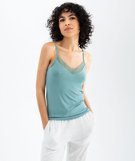 Haut de pyjama à fines bretelles et dentelle femme[MISSING] vert