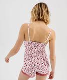 Un joli caraco imprimé de petits motifs ou uni selon les modèles, idéal avec un short de nuit ou un pantalon fluide pour composer un pyjama féminin personnalisé. Ce débardeur de nuit pour femme possède un décolleté V orné d'une délicate dentelle transparente. Pour votre confort, la matière est fluide et extensible, les bretelles sont ajustables et élastiquées sur la partie arrière.