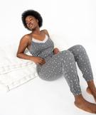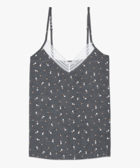 Haut de pyjama à fines bretelles et dentelle femme gris