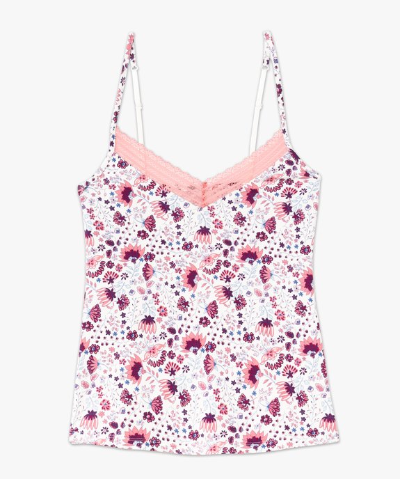 Haut de pyjama à fines bretelles et dentelle femme rose