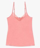 Haut de pyjama à fines bretelles et dentelle femme vieux rose/poudre