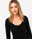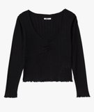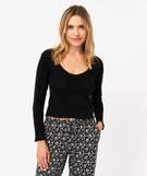 Haut de pyjama à manches longues en maille ajourée femme noir