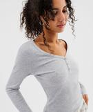 Haut de pyjama à manches longues en maille côtelée femme[MISSING] gris vif