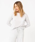 Laissez-vous séduire par ce haut de pyjama fluide. Un haut de pyjama femme confectionné dans une maille fine et confortable. Ce tee-shirt d'intérieur à manches longues possède un large col rond, des épaules tombantes et une poche plaquée sur la poitrine, qui accentuent son allure loose. Ce tee-shirt de pyjama sera le meilleur allié d’un pantalon fluide pour composer une tenue d'intérieur 100% détente. Bas fendu sur les côtés.