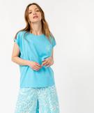 Haut de pyjama à manches ultra courtes avec motif fleuri femme bleu