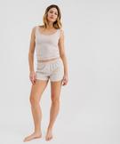 Vous allez tomber sous le charme de ce haut de pyjama pour femme. Confectionné dans une maille finement côtelée fluide, il offre à la fois un toucher ultra doux et de subtils reflets irisés. Un débardeur à larges bretelles et col rond très agréable à porter en saison estivale. Il s’associe au short assorti pour un ensemble de nuit raffiné et féminin.
