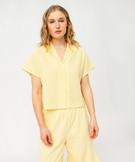 Haut de pyjama forme chemise manches courtes en lin femme jaune