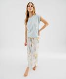 Haut de pyjama manches courtes loose à revers et broderie femme bleu clair