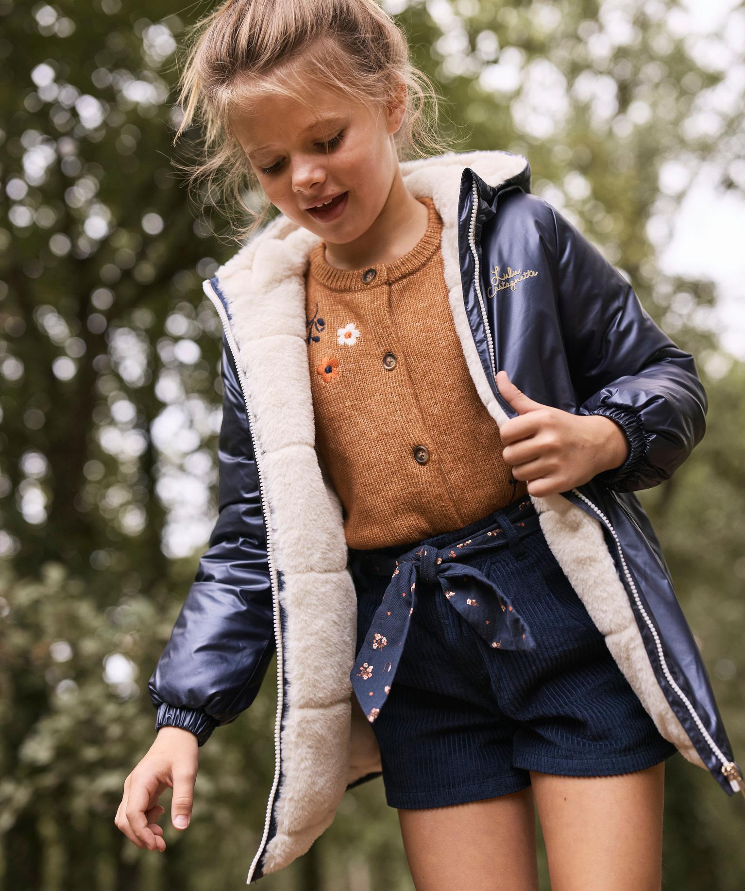 Imperméable à capuche doublure chaude fille - LuluCastagnette bleu fonce