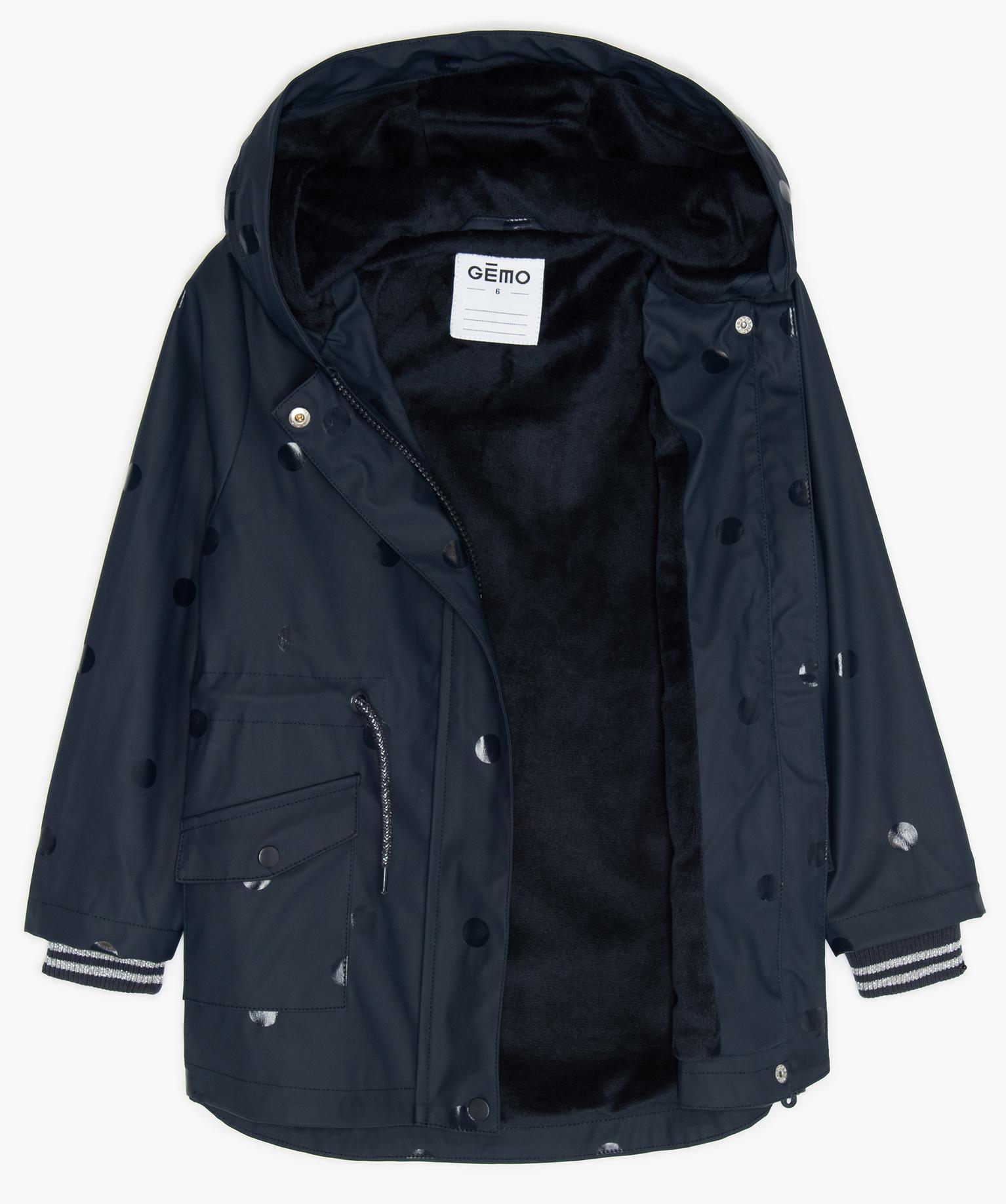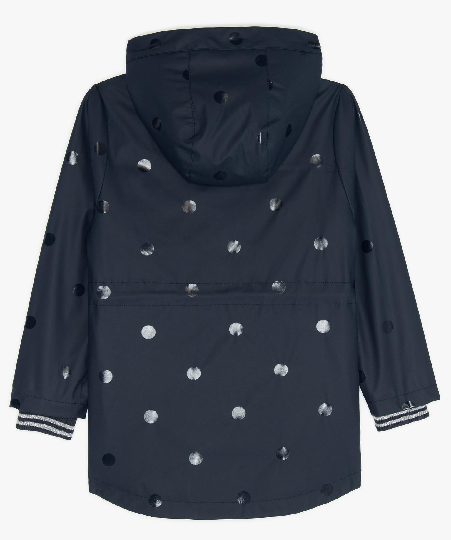 Imperméable fille déperlant à doublure chaude à pois brillant ton sur ton noir chine