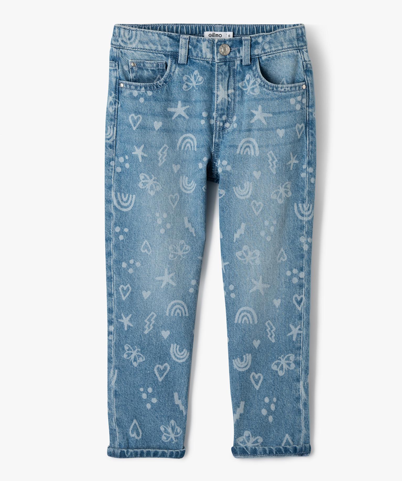 Jean à motifs coeurs coupe ample fille bleu vif
