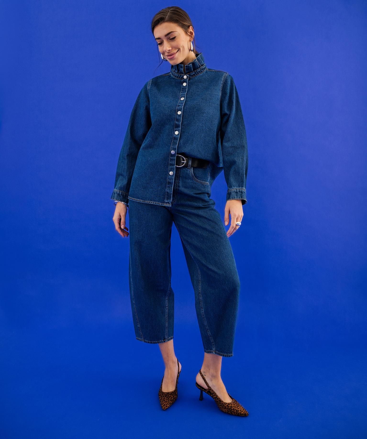 Craquez pour ce jean femme à la coupe barrel très actuelle ! Le jean tonneau possède 3 poches rivetées, 2 poches plaquées au dos, des passants pour ceinture, et une fermeture par zip et bouton. Un jean aux détails classiques, mais à l'incroyable coupe structurée et tendance. Vous allez adorer composer des tenues modernes et féminines au quotidien avec une blouse vaporeuse, un crop top, une petite maille...